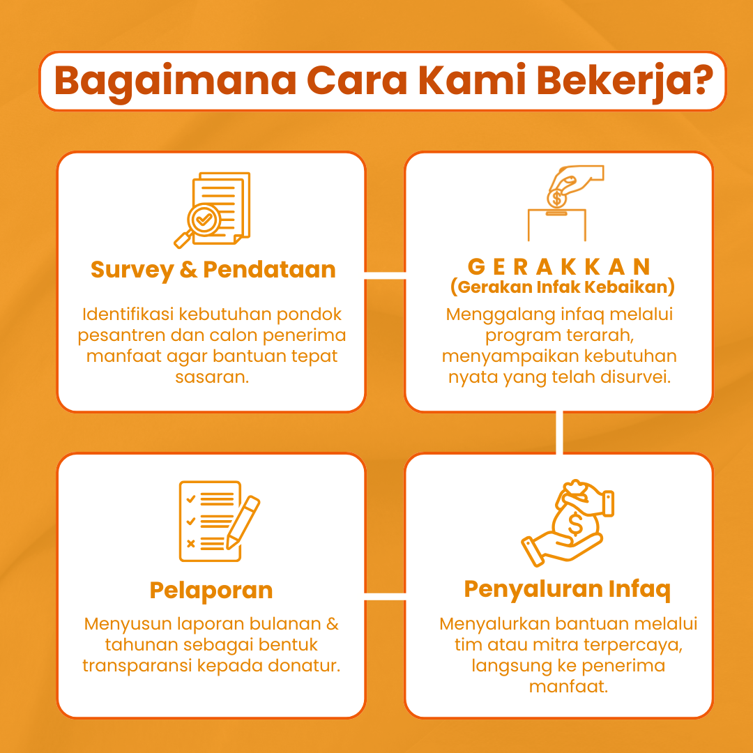 GERAKKAN (Gerakan Infak Kebaikan) adalah wadah kebaikan yang mengajak masyarakat untuk rutin berbagi dan peduli kepada sesama melalui infaq yang amanah dan transparan. Kami percaya bahwa setiap kebaikan, sekecil apa pun, dapat membawa perubahan besar jika dilakukan bersama. Melalui program-program seperti Lentera Santri, Lentera Ilmu, Lentera Daya, Lentera Siaga, dan Lentera Sesama kami berkomitmen menjadi jembatan antara niat baik dan harapan yang nyata.